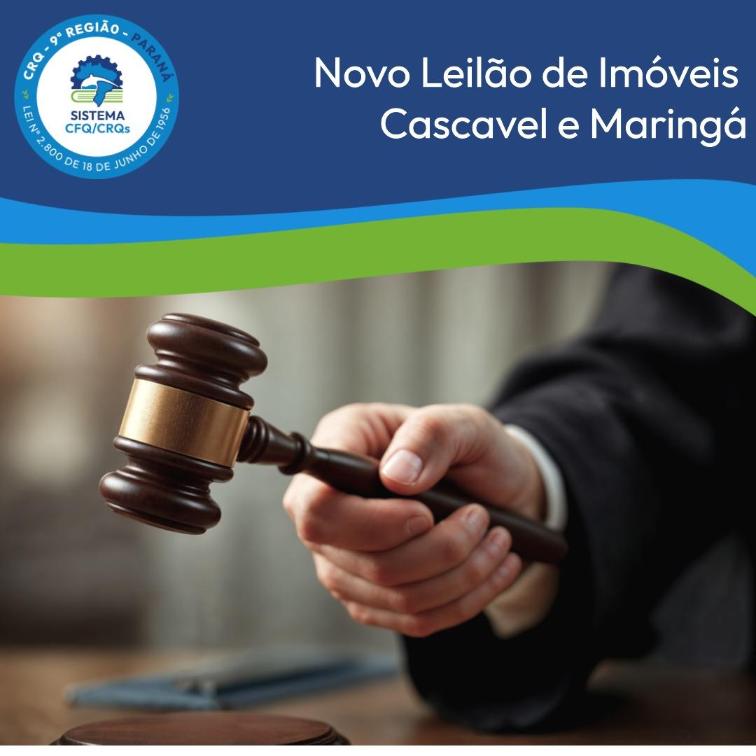 O CRQ-9 anuncia nova tentativa de venda dos imóveis de Cascavel e Maringá.